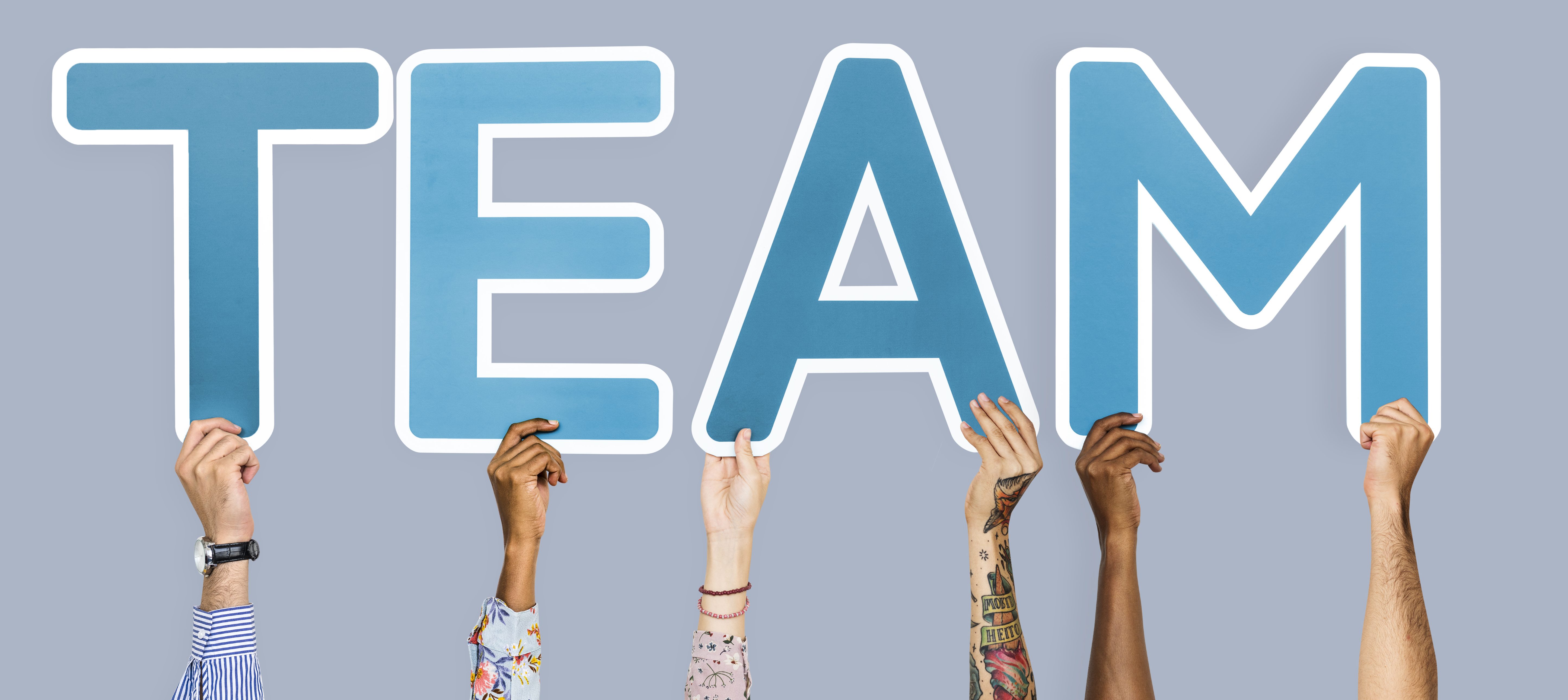 Hands holding the word team